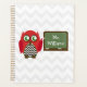 Ein Lehrer-Planer, der eine Abbildung einer Eule zeigt, die in der Nähe eines Kreidebretts mit rotem Apfel stehend ist. Personalisieren Sie mit Ihrem Namen auf der Vorderseite.
