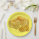 SCHÜSSEL KARTOFFELCHIPS (CHIPS) AUF GELBEM HINTERGRUND (Änderung an irgendeiner Farbe) WegwerfpapierTeller.