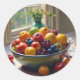 Schüssel mit Obst auf Tisch klassische Ölmalerei Runder Aufkleber