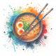 Ai Aquarellbild einer Schüssel Ramen Nudeln, gekochtes Ei, grüne Zwiebeln und Stäbchen.