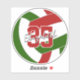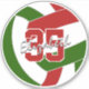 Dieses Team farbt Volleyball-Aufkleber zeigt das Bild eines roten, grünen und weißen Volleyballs, auf dem Sie die Trikotnummer und den Namen des Athleten personalisieren können - von katz_d_zynes