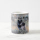 Sensibilisierungskaffee Tasse mit Foto eines grauen Wolfs in Yellowstone. Design und Foto von Don
