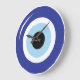 Diese Blue Evil Eye Protection große Wand-Uhr bringt Stil und ein Gefühl der Sicherheit in Ihren Raum. Mit dem traditionellen blauen bösen Augensymbol, das dafür bekannt ist, die Negativität abzuwehren, verbindet diese Uhr Funktion mit kultureller Bedeutung. Dieses auffallende Design ist perfekt für jeden Raum geeignet und schafft einen einzigartigen Brennpunkt, der Schutz und Glück symbolisiert. Die dunkelblauen und weißen konzentrischen Kreise machen es leicht, die Zeit zu lesen, und verleihen der Innendekoration einen besonderen Charme.