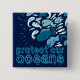 Knopf mit einer Gruppe blauer Fische und der Meldung "Schützt unsere Ozeane."