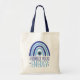 Ein minimalistisches, blau getöntes Design mit einem stilisierten Auge und einer Regenbogenform mit dem ermutigenden Satz „Schütze deine Energie“, der Selbstfürsorge und emotionales Gleichgewicht symbolisiert.