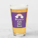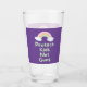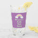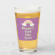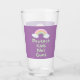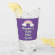 Trinkglas mit "Protect Kids Not Guns"-Text in Minze grün Handschrift Schriftart und pastellfarbene Regenbogengrafik auf lila Hintergrund.