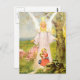 Altes Bild. Mädchen mit Blumen. Drohende Schlange ist Kreuzotter. Engel