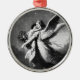 Malerei in Schwarzweiss eines schönen Wächterengelsfliegens über der Stadt, dem Ozean und den Bergen, die ein Bündel Garten-Blumen und ein schlafendes Kind eingewickelt in einer Decke halten. eine sternenklare Nacht mit Mond und ein reizender weiblicher Schutzengel mit großen Flügeln, schönes flüssiges langes Kleid mit Bändern würdevoll zeigend auf die Küstenstadt, während, ein Baby in ihren Armen halten. Renascenceartmalerei im Schwarzweiss-- und chiaro scuro, in in einem magischen sternenklaren nächtlichen Himmel und einem Halbmond des neuen Mondes über den Stadtdachspitzen und -bergen und in einem würdevollen und ruhigen Engel hält, tröstet und schützt ein junges Kind. Vintage Kunst in Schwarzweiss.