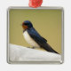 Schwalbe auf einer hölzernen Leiste Silbernes Ornament