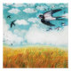 Eine Schwalbenherde, die über ein Weizenfeld fliegt - Buch Illustration für ein Bilderbuch "Die Skarecke und die Schwalbe" (geschrieben und illustriert von Julia Doria). Perfektes Geschenk für Natur- und Vogelliebhaber. Kinderzimmer Wandkunstdekoration.