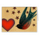 Tätowierungsbilder im Retrostil von Schwalben und Sternen mit rotem Herz.