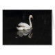Ein Foto eines weißen Schwans, der über das dunkle, ruhige Wasser gleitet. In Roath Park Lake, Cardiff, Wales.