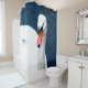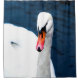 Weiße Schlange vor dunkelblauem Wasser. Swan ist das Symbol für Schönheit, Liebe und Loyalität, der König der Vögel. Simuliertes Ölgemälde aus einer Fotografie. Duschvorhang zu dekorieren Ihr Badezimmer für Spaß und gute Laune.