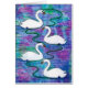 Vier symmetrische weiße Schwäne, die auf einem See gleiten