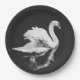 Schwan Schwimmen Schwarz und Weiß Perfekter weißer Schwan mit Federn, während sie im Wasser landen.
