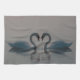 Phantastisches Foto von zwei Schwänen, die von Kopf zu Kopf schwimmen und so die Illusion eines Herzens auf dem Wasser erzeugen. Sie sind zusammen auf einem frühen morgendlichen Stausee.