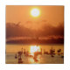 Atemberaubende und romantische landschaftliche Ansicht der Schwäne in der Silhouette auf einem See am Sonnenaufgang.