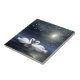 Zwei Schwäne in einer wunderschönen Mitternachtsmondlandschaft mit Sternenhimmel, die eine romantische Keramik bilden