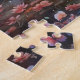 Ein Puzzle aus zwei Schwänen, die im Herbst in einem Bach schwimmen
