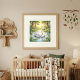 Eine süße und sanfte Illustration mit einer Schwanenmutter und ihren Küken, die einen friedlichen Moment in der gemütlichen Waldwelt von Ivory Nest einfängt.