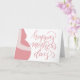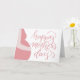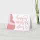 Die Tageskarte dieser Mutter zeigt eine Seitenansicht einer schwangeren Frau mit Hand über dem Bauch. Auf der rechten Seite sind die handgeschriebenen Worte "Tag der glücklichen Mutter". Geben Sie das der besonderen Mutter in Ihrem Leben!