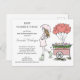 Whimsical illustrierte schwangere Mutter lackierte rosa Baby sprinkle Babydusche mit rosa Ballons und Mama mit Regenschirm und Regenschuh-Galoschen. Eine Babydusche lädt zur Ankunft Ihres 2. Babys ein.