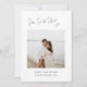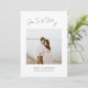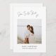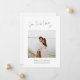 Stilvolle und minimalistische Schwangerschaftsankündigungskarte mit Skripttext an der Spitze, der "bald drei sein" mit Herz sagt. Sie können vorne und hinten ein Foto hinzufügen.