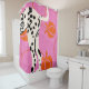 Ein gewagter und moderner Kunstdruck mit Hinterbeinen und Schwanz eines Dalmatiners vor einem lebhaften rosa Hintergrund. Stilvolle orangefarbene Pfirsiche und abgerundete Linien sorgen für eine spielerische, abstrakte Touch. Ideal für Hundefreunde und für diejenigen, die einzigartige Grafik-Designs schätzen.