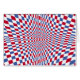 Die farbenfrohe und trendige Gestaltung verleiht dem Produkt ein stilvolles und modernes Aussehen mit diesem dekorativen und abstrakten Aussehen. Das Muster der blauen, roten und weißen quadratischen Formen geht von der Kante bis zur Mitte und wird in der Mitte kleiner. Sie können es auch individuell anpassen, um ein persönlicheres Aussehen zu erhalten.