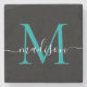 Eleganter moderner Aquamariner Aqua Green Monogram Feminine Script Name Stone Untersetzer