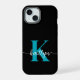 Schwarz-Aquamarin-Monogramm iPhone 15 Hülle