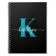 Dieses einfache, elegante, schwarze 6,5 x 8,75 Spiralnotebook mit Ihrem Vornamen in einem trendigen Script-Schriftart in Weiß und Ihr erster Einstieg in einen modernen aquamarinen Cap-Schriftart ist perfekt für Sie. Es ist stilvoll und trendig und dennoch sehr klassisch. Es wird in so vielen Situationen praktisch sein. Ideal für Arbeit, Zuhause, Schule, Journalismus.