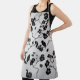 Schwarz auf Silbermustern Vögel und Kirschblüten Schürze