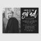 Wir laden Sie ein, den Absolventen mit unserem Applaus für die Graduiertenfeier zu feiern. Die magnetische Graduierungspartei lädt dazu ein, das senkrechte Foto des Absolventen auf den links zu zeigen. "Höhepunkt" wird in einem weißen, handgeschriebenen Pinselskript mit schwarzem Hintergrund angezeigt. Personalisieren Sie das Design, indem Sie den Namen des Absolventen, den Namen der Schule, das Jahr des Abschlusses und die Einzelheiten des Party hinzufügen.