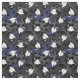 Camouflage Abschluss Stoff in den Bereichen Blau, Kohle, Schwarz und ein Muster von weißen Graduierungskappen.
