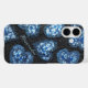 Elegantes Design für dieses feminine iPhone-Gehäuse inspiriert von meiner einzigartigen Textilkunst-Stickerei. Herzformen mit blumengeschmückten Wildblumen in blauen Nuancen auf schwarz gefaltenem Hintergrund. Schönes Zubehör zum Schutz Ihres Handys oder eine kreative Geschenkidee unter 50 Dollar für sie geeignet für viele Anlässe und Feiern.
