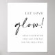Lass Liebe glühen! Nimm einen Glühstock und mach den Weg für die Neuvermählten frei. | Fügen Sie dieses festliche Hochzeitszeichen zu Ihrer Veranstaltung hinzu. Es enthält ein schwarzes, fett geschriebenes Skript mit klassischer Typografie. Personalisieren Sie Ihre persönlichen Daten, indem Sie Ihre eigenen Daten hinzufügen.
