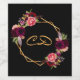 Ein schicker schwarzer Hintergrund mit einem geometrischen Rahmen für Imitate. Die Einrichtung besteht aus dunklen, lila und bordeauxfarbenen Blume, Rose und Boho-Federn. Personalisieren und fügen Sie Ihre Monogramm, Initialen. Goldene Buchstaben.