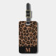 Gepäckanhänger mit einem klassischen schwarz-braunen Leopardenfleckenprint, Monogramm-Initial/Name auf einem Monogramm mit schwarzem Streifen, Name und Adressinformationen auf braunem Hintergrund. Personalisieren Sie Ihre Monogramm-Initial(en)/Name, Name und Adressinformationen mithilfe der einfachen Vorlagen. Schriftart, Schriftart, Schriftart und Braunhintergrundfarbe sind anpassbar.