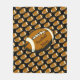 Dieser weiche, kuschelige Sportvlies-Decke verfügt über einen braunen und weißen Fußball, der durch die Luft fliegt. Personalisieren Sie einfach den Text für einen speziellen Sportfan oder entfernen Sie ihn ganz. Passen Sie den dunklen Hintergrund an die Farbe Ihrer Wahl an.
