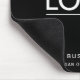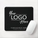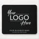 Modernes, markiertes Werbemittel schwarzes Mauspad. Fügen Sie Ihr Firmenlogo, den Firmennamen und zusätzliche Zeilen weißen Textes für Ihre Tagline, Slogan, Website, etc. hinzu.