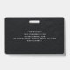 Ein schlankes und berufliches Foto Abzeichen, das für moderne Arbeitsplätze konzipiert ist. Dieses benutzerdefinierte Abzeichen weist einen schwarz strukturierten Hintergrund auf, der durch einen einfachen silbernen Farbverlauf gekennzeichnet ist, der den Namen/Titel vom Foto-Bereich trennt. Fügen Sie Ihr Foto, Ihren Namen, Ihren Titel und Ihre Organisation hinzu, um einen gepflegten, gepflegten Look zu erhalten. Ideal für Anwälte, Rechtsanwälte, Rechtsanwälte, Büroangestellte, echte Anwesen-Agent, Berater und andere Fachleute, die gewollt sind, sich mit Stil und Zuversicht in kundenorientierten Umgebungen zu präsentieren.
