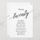 Schwarz-Elegantes Script-Tischnummer 20-Seating Ch Einladung