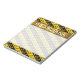 Dieses Notizblock-Design weist ein Muster aus schwarzen und gelben Streifen auf, die in der sechzehnten Note musikalische Symbole enthalten. Das könnte ein großartiges Geschenk für einen Musiker, einen Komponisten oder jemanden, der gerne Musik hört. Es verfügt auch über einen benutzerdefinierbaren Namen in einem goldfarbenen Imitat. [~Z0000037]