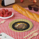 Schwarz-Gelb-Foto-Abschluss-Papierplatte Pappteller