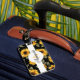 Schwarz-Gelb-Gelb-Sonnenblume Nahtloses Muster Gepäckanhänger