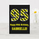 Die Vorderseite dieser kühnen und lustigen Geburtstagskarte zeigt eine große Zahl "95" mit einem schwarz-gelben Streifen Muster, zusammen mit der Meldung "Happy 95 th Birthday" und einem personalisierten Namen. Der Hintergrund der Vorderseite ist schwarz. Im Inneren befindet sich eine individuell anpassbare Geburtstags-Grußnachricht, oder vielleicht kann gelöscht und links werden, wenn eine Nachricht von Hand geschrieben werden soll. Eine personalisierte Geburtstagskarte wie diese könnte eine lustige Art sein, Geburtstagwünsche an jemanden zu senden, der gerade seinen fünfundneunzigsten Geburtstag feiert. [~Z0000382]