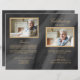 Beerdigungs-Gedenkprogramm mit einem Foto des Verstorbenen, seinem Namen, seinen Daten, der Gedenkstätte, dem Veranstaltungsdatum und dem eleganten Goldrahmen. Im Inneren ist eine Gedenktafel, und die Dienstordnung; und auf der Rückseite ein anderes Foto, ein Dankeschön und der zweite Ort für nach der Beerdigung. BITTE BEACHTEN SIE: Diese sind als flaches Qualitätspapier erhältlich, das Sie selbst falten müssen.