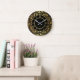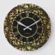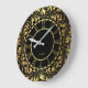 Schwarz-Gold-Blumen-Blätter Elegantes Muster Große Wanduhr