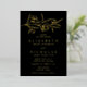 Elegante blumengeschmückte Hochzeitsfeiern mit zartem Goldfolien-Blume und Blätter in der Nähe der Spitze vor einem reichen schwarzen Hintergrund. Personalisieren Sie Ihre Namen und Hochzeitsdetails in klassischer Goldfolie für ein zeitloses, luxuriöses Aussehen. Diese Einladungen sind Teil unserer Hochzeitskollektion mit gezeichneten Blütenblättern und eignen sich hervorragend für feierliche Hochzeiten, Hochzeiten mit schwarzer Krawatte oder Abend.